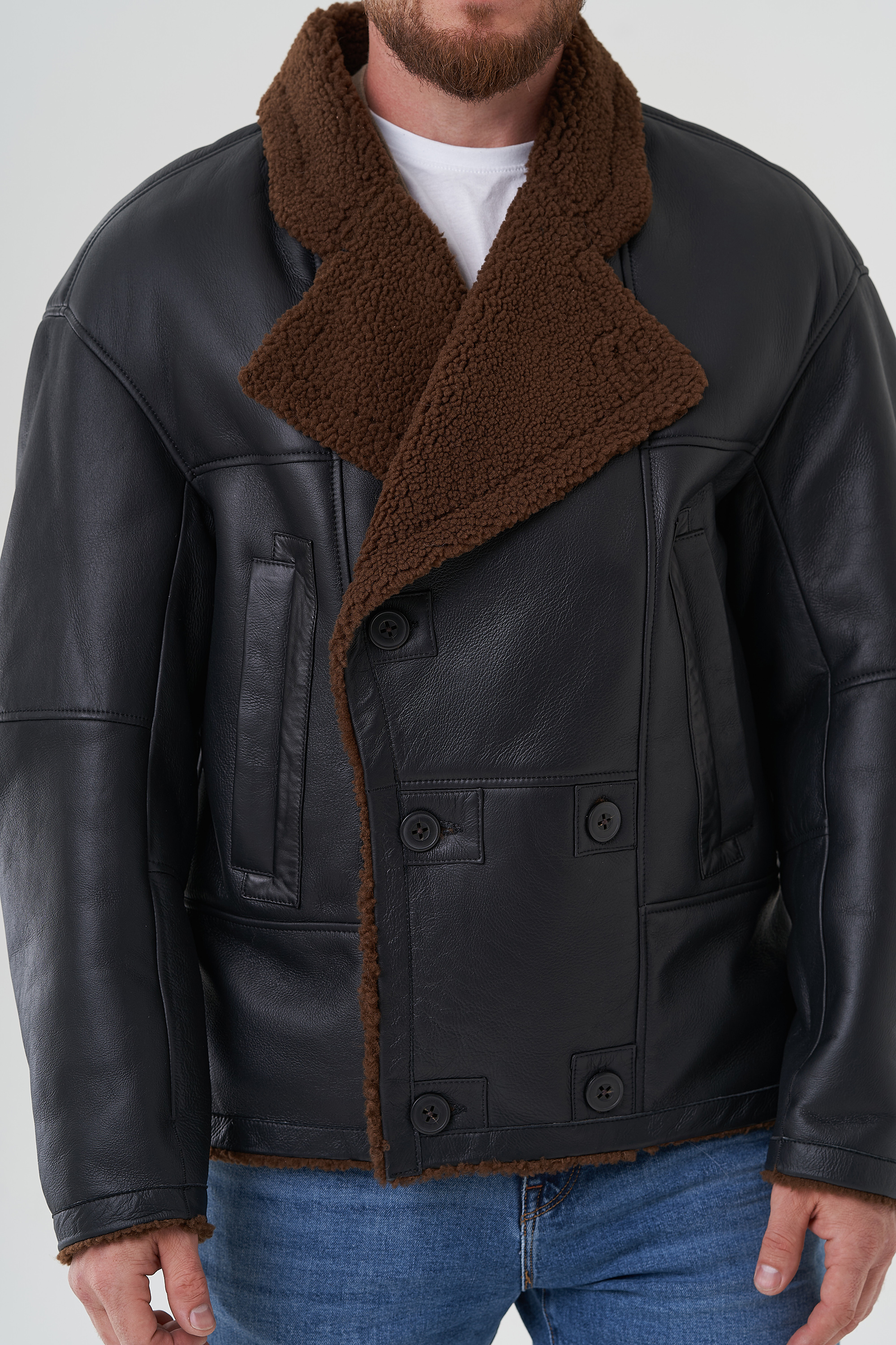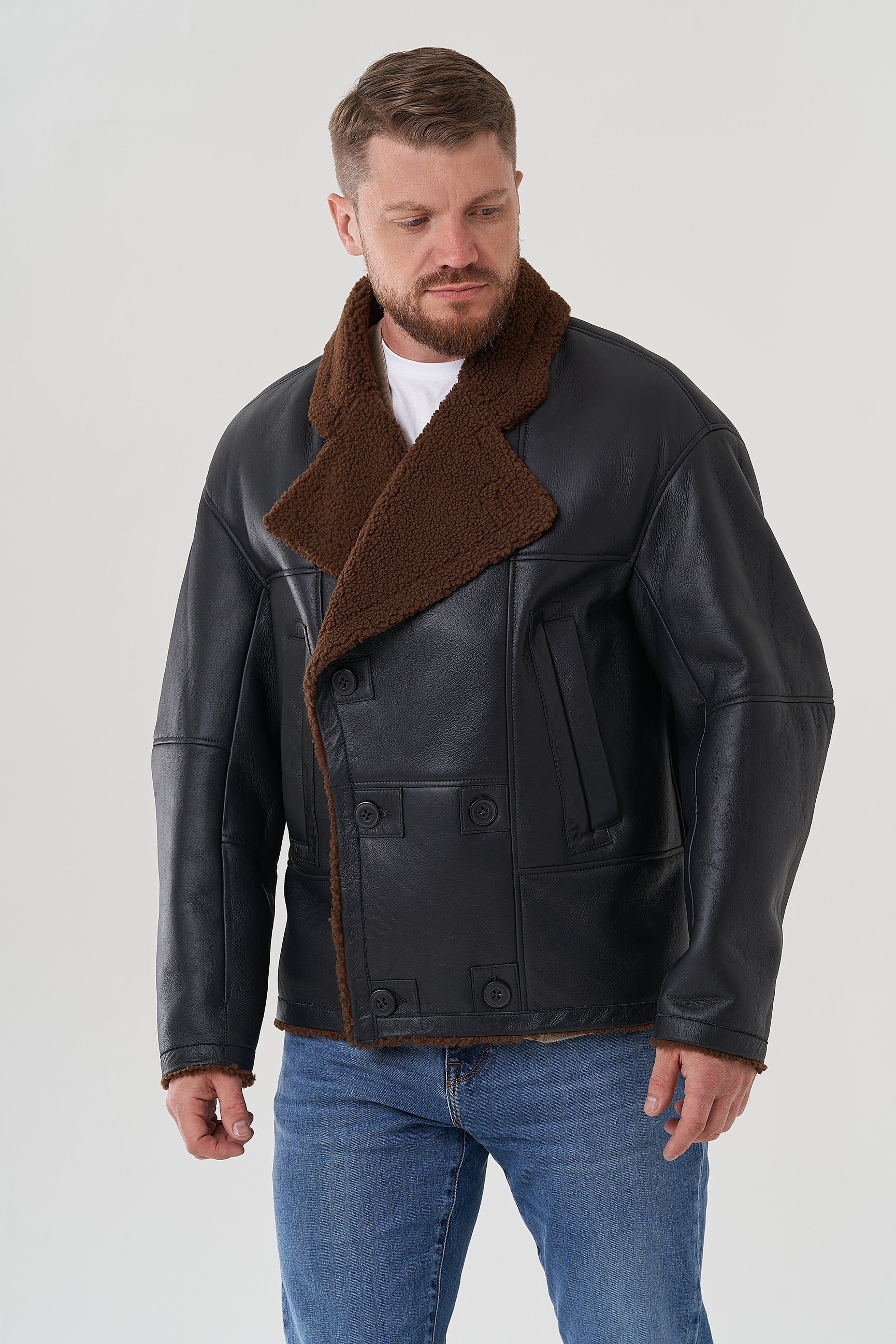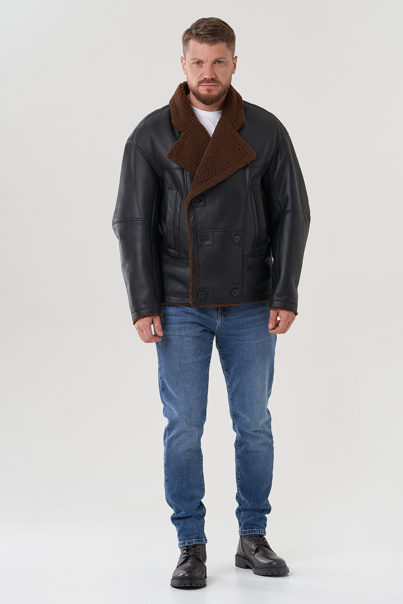 Тип ворота - английский воротник , отделка овчина мерино, цвет - коричневый