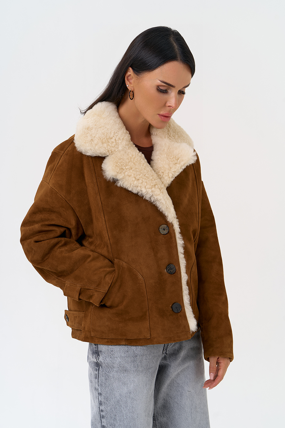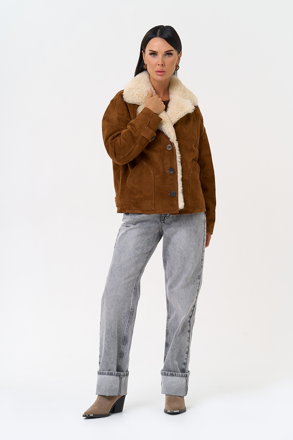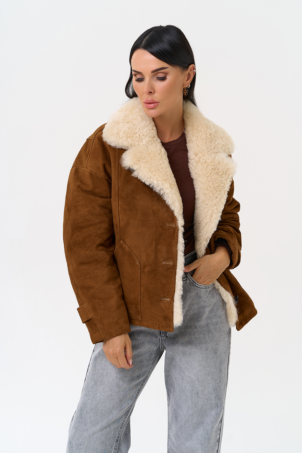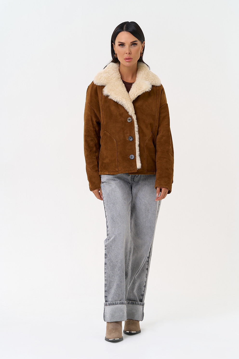 Тип ворота - английский воротник, отделка овчина