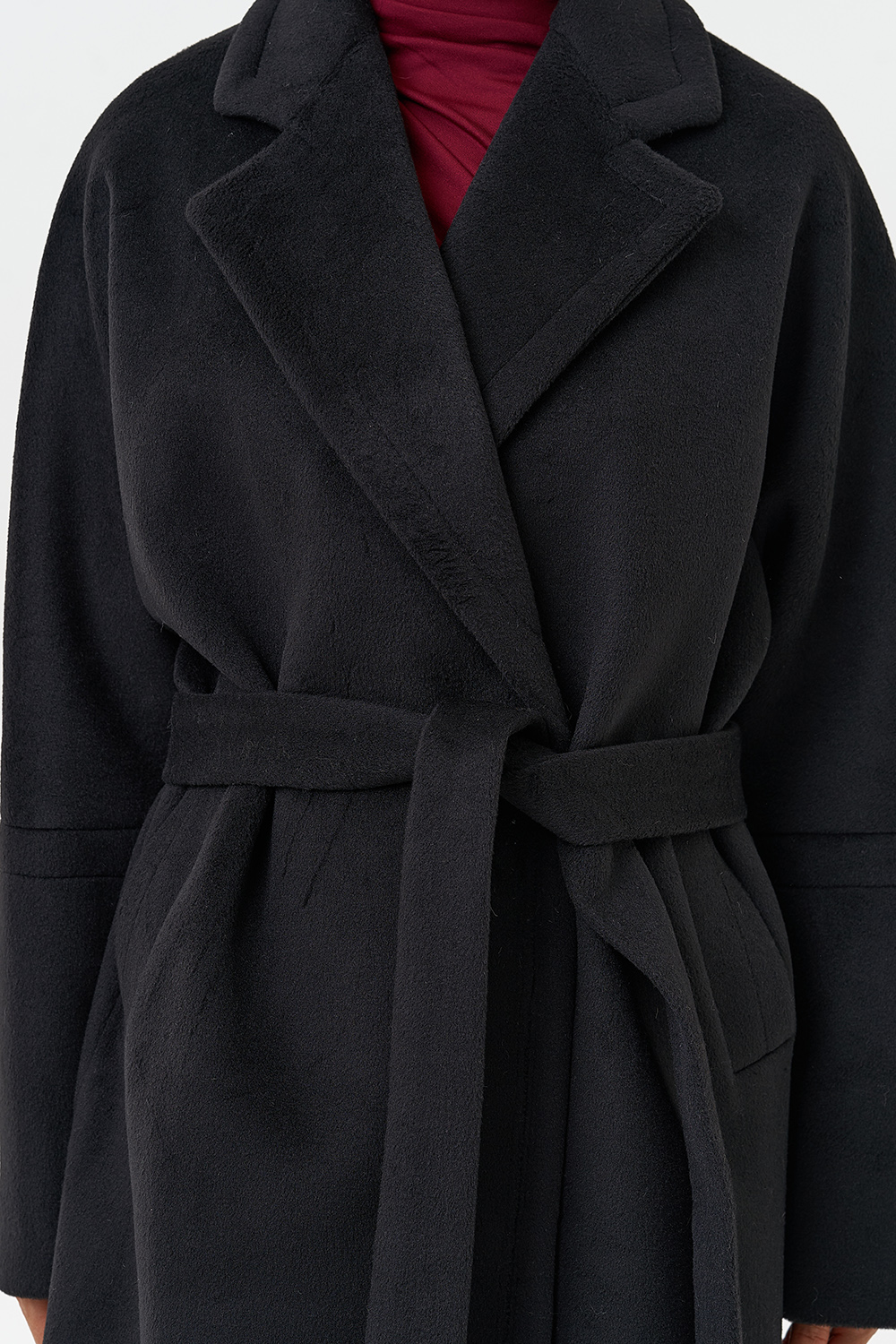 Силуэт - прямой Цвет - черный Длина - 115 см Вид полотна - тканое Состав полотна - шерсть 80%, п/э 20% Вид застежки - кнопки Крой воротника - английский воротник Фасон рукава - спущенное плечо, длинный Фасон кармана - прорезной Пояс |