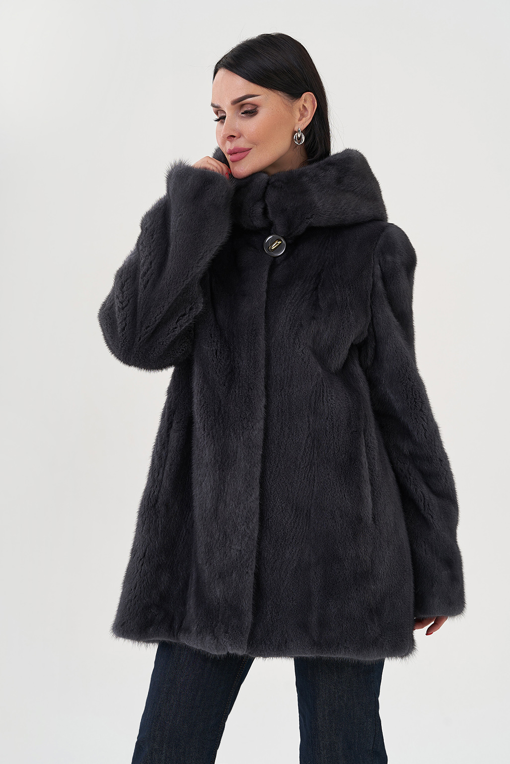 Шуба из норки с капюшоном