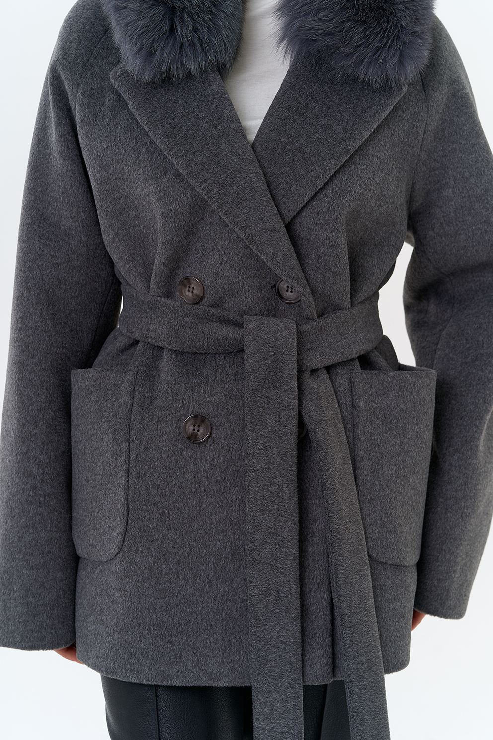 Крой воротника - английский воротник, отделка песец